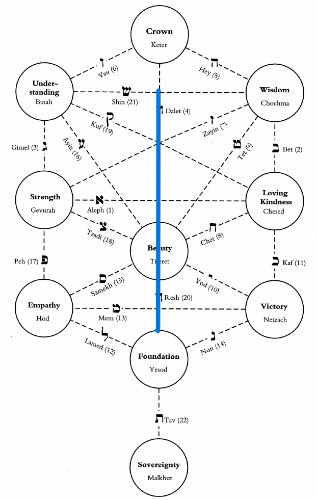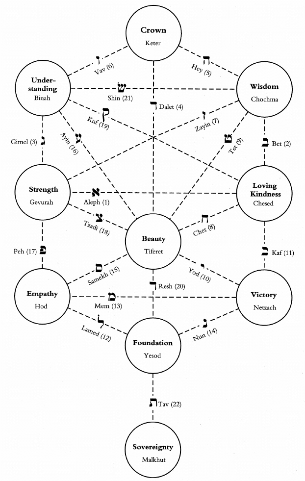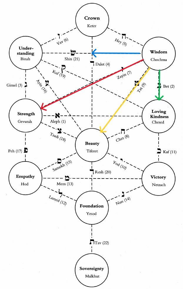 The Twenty-seventh path relates to the creation of human beings, their “ensoulment” and their motion. Here we can see that “soul” is related to “intellect” or “reason” in one translation; it is called the “life-breath” of human beings in another translation, and it is here that a great transformation takes place in the being of human beings. We can relate this “intellect” to the Greek logos or perhaps the Greek nous, but it more closely relates to the Latin understanding and translation of logos as rationale or “reason” rather than the broad Greek understanding of the term.