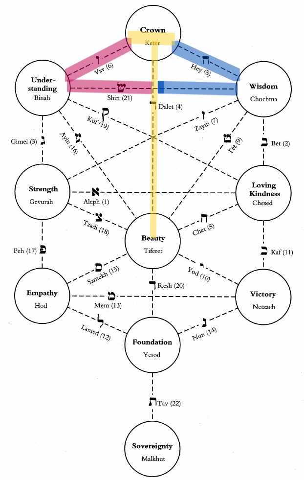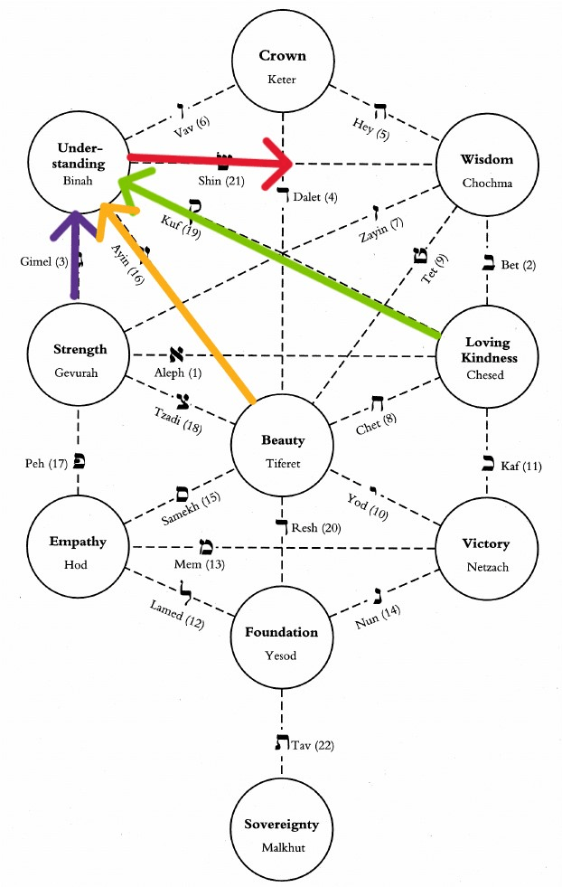 Path 22. Faithful Intelligence (Consciousness) (Sekhel Ne’eman): It is called this because spiritual powers are increased through it, so that they can be close to all those ‘who dwell in their shadow’.